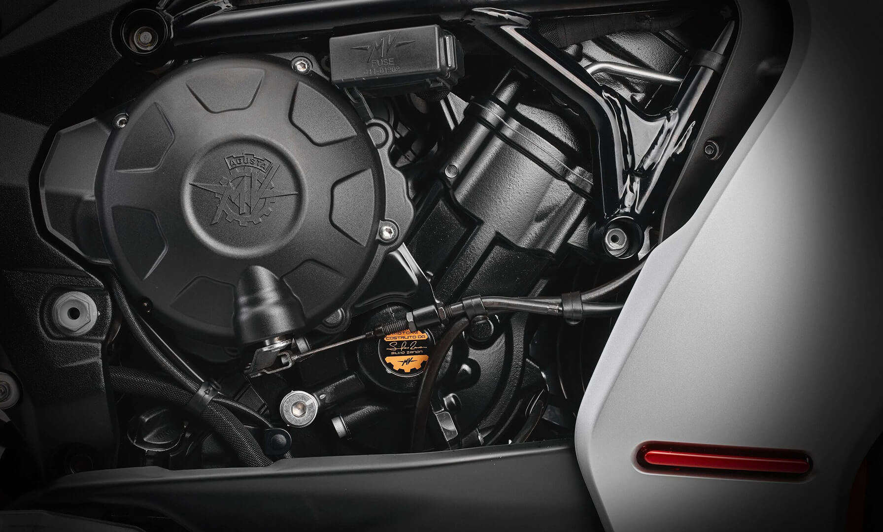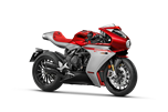 A Superveloce representa elegância e exclusividade. Com o seu design neo retro, é uma obra-prima em movimento. Apresenta uma combinação de cores única: Fire Red e Satin Intense Silver, que acentua as suas linhas e curvas. A correia em couro que atravessa o depósito de combustível reforça a exclusividade da moto.